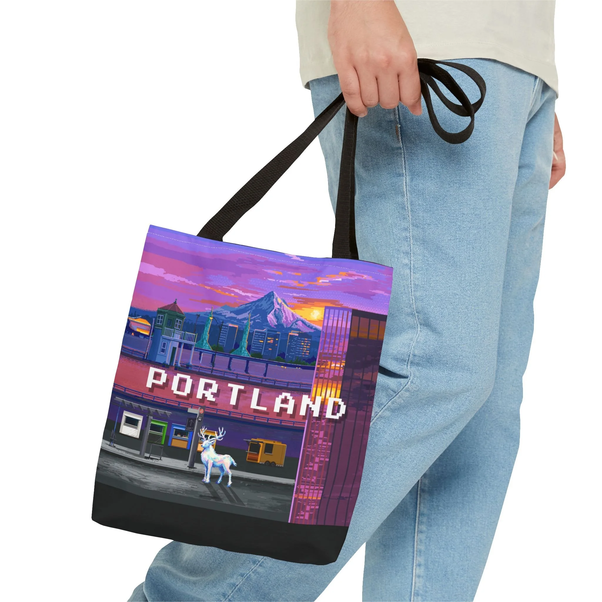Portland Sunset Tote Bag — Scenic Mt. Hood Cityscape with the Celestial Stag